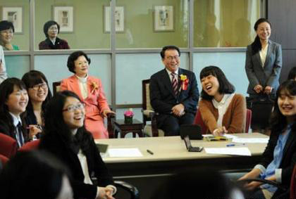 중공중앙 정치국 리창춘 상무위원이 한국 이화여자대학에서 청년학생들과 교류