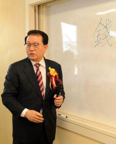 리창춘 상무위원은 학생들에게 중국 고대 한자의 구조특점을 설명하고