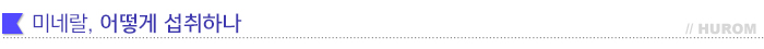 유기 미네랄은 무기 미네랄보다 체내 흡수가 잘 되어 영양 인자로서의 이용률이 높고 체내에 축적될 우려가 적습니다. 따라서 무기 미네랄을 직접 섭취하는 것이 유기 미네랄을 섭취하는 것보다 훨씬 더 효과적인데요. 또한 미네랄은 여러 음식에 골고루 포함되어 있기 때문에 평소 편식을 하지 않는 습관이 매우 중요합니다.