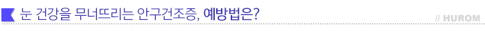 위의 증상은 안구건조증의 대표적인 증상들입니다. 눈에 무리를 주다 보면 일시적으로 이런 증상이 나타날 수 있지만 이런 증상들이 계속된다면 안구건조증임을 의심해보고 병원을 찾는 것이 좋겠죠?