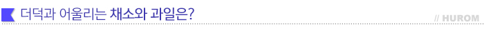 앞서 말씀드렸듯이 더덕은 사포닌이라는 성분 때문에 쌉쌀한 맛이 강합니다. 따라서 생활 속에서는 생더덕에 꿀을 발라 구워서 먹기도 하고, 양념을 해 반찬으로 먹곤 하는데요. 몸에 좋은 더덕은 채소, 과일과 함께 먹으면 맛과 영양을 더할 수 있습니다. 그럼 어떤 채소와 과일이 더덕과 음식궁합이 잘 맞을까요?
