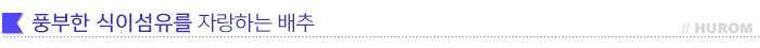 배추의 영양에 대해 허준의 [동의보감]에서는 ‘성질이 평하고 맛이 달며 독이 없다’고 했습니다. 또한 비장을 튼튼하게 하고 위를 강하게 해 소화불량과 변비, 해열, 종기, 숙취에 좋다고 해요. 특히 배추에는 식이섬유소가 풍부해 장의 운동을 촉진하는 정장작용을 하기도 합니다. 황화합물이 들어 있어 가열을 하면 황화가스와 기타 황화합물이 발생되어 유황냄새가 나는 것이 특징입니다. 또한 비타민 C 가 풍부하며 이는 김치로 담글 때에도 별로 손실되지 않으나 데치는 과정에서는 손실이 많습니다. 무기질이 풍부해 칼슘과 칼륨이 풍부하기도 한데요. 특별한 칼슘원이 없었던 옛날에는 배추 및 젓갈로 담근 김치를 주요 칼슘원으로 삼았습니다.
