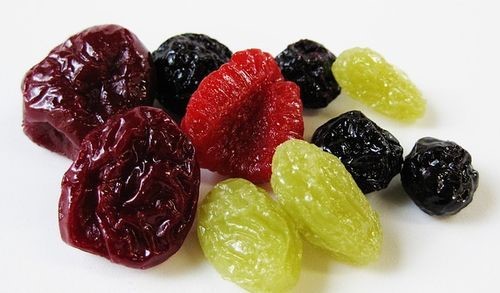 - 말린 과일 = 수분이 없는 말린 과일에는 당분이 많이 들어있어 치아에 잘 들어 붙는다. 말린 과일이 치아에 붙게 되면 세균이 많이 생기게 된다. 되도록 일반 과일을 먹는 것이 좋고, 말린 과일을 먹은 경우에는 물로 입을 헹군 뒤 20분 후에 양치질을 해 씻어내야 한다.