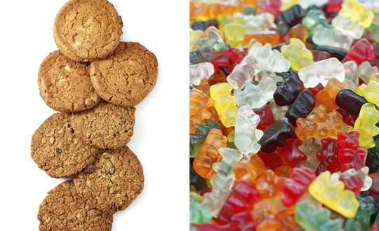 ◆과일 맛 젤리=알록달록한 과일 맛 젤리는 과일즙을 일부 함유하고 있지만 당분이 높은 옥수수 시럽으로 만들기 때문에 건강 측면에서는 비타민 사탕만 못하다. 따라서 과일 맛 젤리보다는 식이섬유가 풍부한 말린 과일이나 과일 그 자체가 더 낫다. 과일에는 과일 향 만 첨가한 군것질거리가 절대 흉내 낼 수 없는, 면역력을 높이는 영양이 풍부하다.