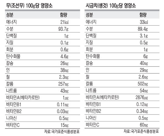 한편 무로 요리를 할 때 껍질도 함께 쓰는 것이 유리하다. 무의 비타민C와 비타민B는 특히 껍질 부분에 많다. 따라서 무즙을 낼 때도 껍질을 벗기지 말아야 한다. /문화일보