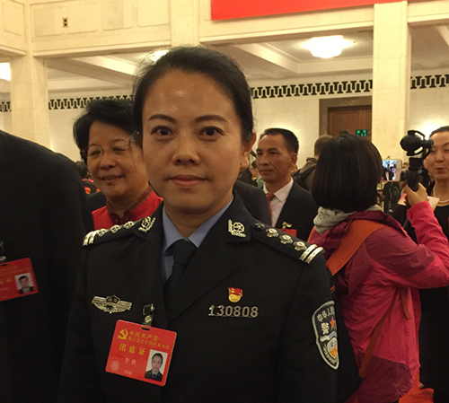 리패 대표: 사회주의 체계 건설과 중국 특색의 사회주의 법치국가 건설은 우리 공안경찰로 하여금 습근평 총서기가 제기한 당에 충성하고 인민을 위해 복무하며 공정한 법 집행과 엄격한 규율을 준수할데 관한 총 적 요구에 따라 매 안건을 잘 처리하고 제반 구체적인 사업을 잘 실행해 공평과 정의를 구현하고 법치 국가 건설을 위해 저희들의 힘을 이바지해야 한다고 생각합니다.