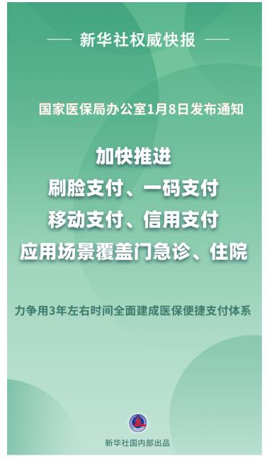 대중들이 진료비 납부시 ‘여러번 줄을 서고’와 ‘장시간 대기하는’ 등 문제에 초점을 맞춰 국가의료보험국 판공실은 1월 8일 를 발부하여 얼굴인식결제, 원코드결제, 이동결제, 신용결제가 다양한 의료정경에서 시행되도록 다그치며 3년내에 전면적으로 의료보험 간편결제체계를 힘써 구축한다고...