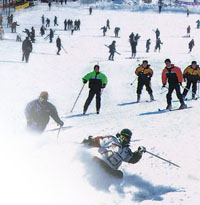목단강은 현재 중국에서 산지스키장을 제일 많이 보유하고있는 도시이다. 중국 국가스키훈련기지의 소재지이기도 하다. 목단강에는 설향, 모란봉, 횡도 등 9개의 스키장이 있는데 그중 모란봉, 횡도스키장은 각기 걸림식견인차를 설치하였으며 활주로길이가 1000미터이상에 달한다. 이런 스키장은 매년 12월초부터 이듬해 3월말까지 스키를 즐길수 있다. 게다가 인공제설이 필요없다. 이밖에 형식이 다채로운 설상오락항목은 긴장하고 자극적인 스키운동에 경건하고 즐거운 맛을 더해준다.