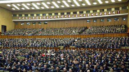 조선 각 계층의 3000명 관중들이 중국 영화를 관람하고있다./신화사 |