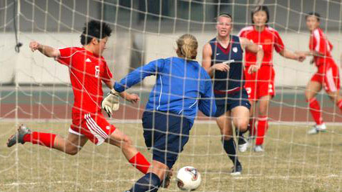 (흑룡강신문=하얼빈 2006-01-16)=14일 오후 중국녀자축구팀은 광주 황포체육장에서 미국녀자축구팀과 한차례 평가전을 가졌다. 대련처녀 마효욱이 17분만에 터트린 결정골로 중국은 1-0으로 미국을 격파했다. 이 승리는 한동안 저조기에 빠져있던 중국녀자축구팀에 강심제를 놓은셈이다.