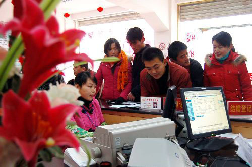 (흑룡강신문=하얼빈 2007-01-23)="새해에 들어서서도 결혼하는 사람이 줄어들지 않고 있어요! "