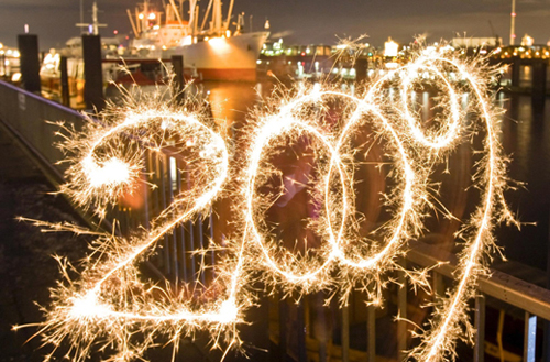 29일 독일 함부르크의 상파울로 다리우에서 불꽃으로 쓴 수자 ‘2009’가 화려하다