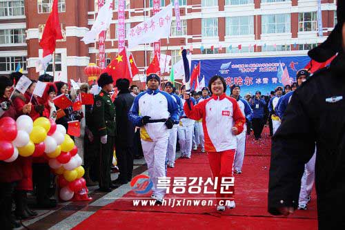 (흑룡강신문=하얼빈 2008-12-22) = 할빈 제24회 세계대학생동계운동회 성화봉송행사가 21일 '두루미 고향' 치치할시에서 진행됐다.
