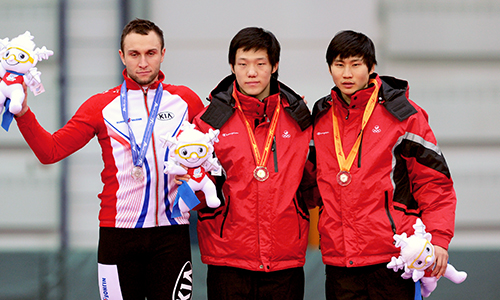 (흑룡강신문=하얼빈) = 24일 하얼빈 대동회 스피드스케이팅 남자 1000미터 결승서 한국 모태범 선수와 이강석 선수가 각기 금메달과 동메달을 따냈다.