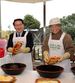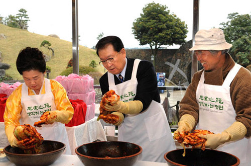 (흑룡강신문=하얼빈) = 4일 한국 공식방문중인 중공중앙 정치국 리창춘 상무위원은 한국 제주도 성범영 주민을 방문, 그들 3대 일가족과 함께 한국전통김치를 담그면서 친밀하게 이야기를 나누었다.