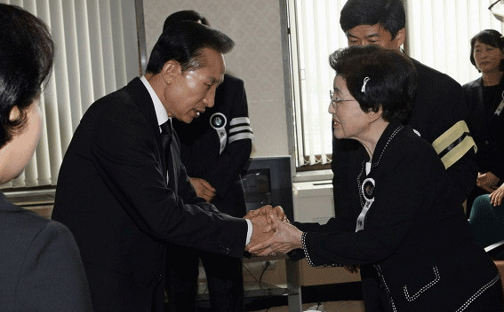 이희호 여사의 손을 잡고 위로하는 이명박 부부
