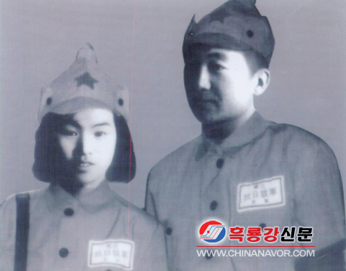 | 가열처절했던 전쟁연대에 맺어진 사랑(남편 진뢰 전 흑룡강성 성장과 함께). |