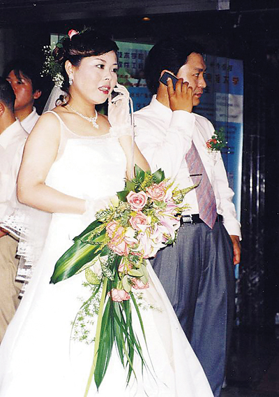 | 2004년 염급토의 손자 엽승충의 혼례식장면. 웨딩드레스를 입은 신부가 휴대폰으로 친구와 통화하고 있다. |