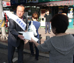 한중동포신문 이영한 편집국장이 홍보문을 나눠