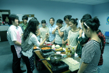 | 중국내에서 한국어를 배우는 사람들은 빠르게 증가하고 있다. 백제어학원에서 떡볶이 요리체험을 통해 한글을 배우고 있는 중국인 수강생들. |