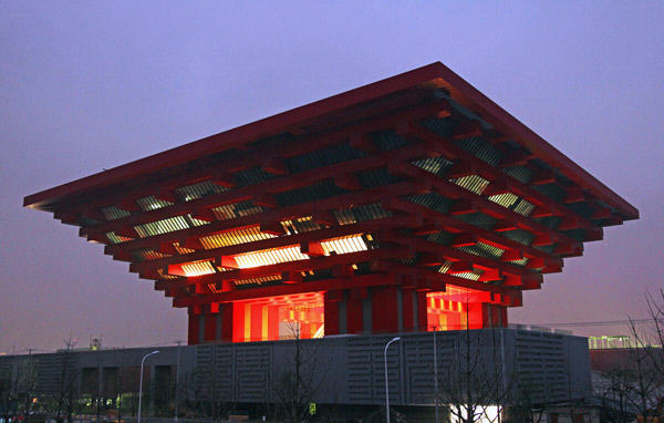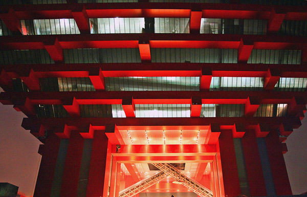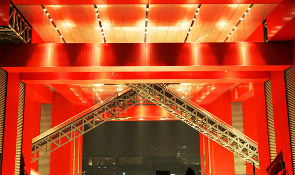 (흑룡강신문=하얼빈) 17일 저녁 상하이엑스포원구의 중국관내 홀에서 조명 시험을 진행했다.