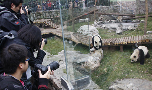 (흑룡강신문=하얼빈)이날 쓰촨 워룽중국판다보호연구센터에서 온 '엑스포 판다'10마리가 상하이동물원에서 정식으로 시민들을 맞이했다. 소식에 따르면 '엑스포 판다'는 올 상반기 상하이동물원에서 관광객들을 맞고 하반기 상하이야생동물원으로 간다. 엑스포기간 이 귀여운 판다 10마리는 상하이엑스포 마스코트 하이바오와 함께 세계 각국 손님들을 맞이한다. /신화사