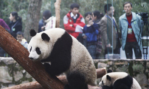 1월 20일 '엑스포 판다'가 관광객들의 발길을 끌고 있다. /신화사 |