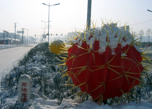 (흑룡강신문=하얼빈)최근 목단강시 대러경제기술개발구관리위원회에서 30만원을 투자해 목단강시 강남개발구 우쑤리도로 량켠 록화대에 홍,황,록 세가지색으로 된 1미터직경의 선인구를 설치해 이 도로를 경관도로로 변모시켰다.