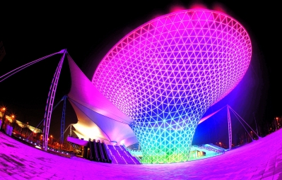 (흑룡강신문=하얼빈) 5월 1일 정식 개막되는 상해세계박람회가 본격적으로 역계시(倒计时)에 진입했다.개막을 30일 앞둔 상해세계박람원은 현재 각항 건설이 마무리 단계에 들어갔으며 근 만여명의 사업일군들이 잔업을 하며 공사 진도를 다그치고 있다. 사진은 3월 31일 등불 조정을 하고 있는 세계박람회축(世博轴)이다.