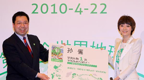 4월 22일 배우 순리(우)가 '엑스포녹색출행교통카드' 발생의식에 참가해 이 카드 첫장을 구매했다. /신화사 |