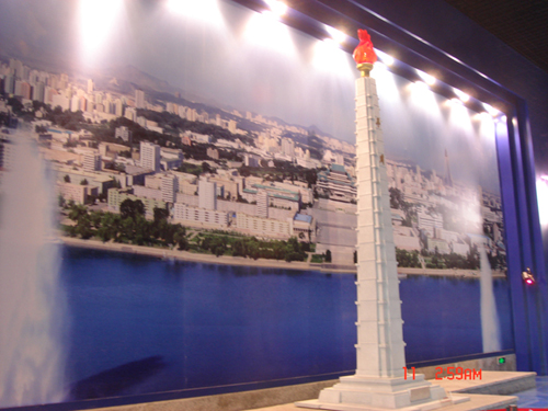 도시로 불리우는 평양시의 면모를 보여주고 조선인민의 강성대국건설 정신풍모를 반영한다. |