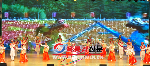 (흑룡강신문=하얼빈)중국문화부에서 선정한 100여개 '중화인민공화국 창립 60주년 경축 헌례공연' 행사의 하나인 연변가무단의 가무 '장백산아리랑'이 2010년상해엑스포 헌례작으로 최근 상해예해극장에서 멋지게 펼쳐졌다. /한동현 기자