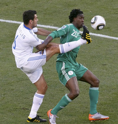 17일 열린 남아공월드컵 B조 2차전에서 그리스가 나이지리아를 2-1로 꺾고 역전승했다.