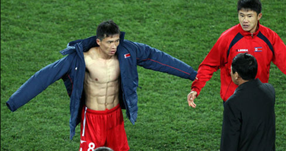 (흑룡강신문=하얼빈) = 세계 최강 군단 브라질을 만나 짜릿한 석패를 당했지만 조선 지윤남선수가 첫골을 넣어 44년만에 월드컵에 복귀됨을 세인들에게 강하게 알려주었다. 경기가 끝난후 유니폼을 바꿔입은 지윤남 선수의 8각 복근이 카메라에 잡혔다.