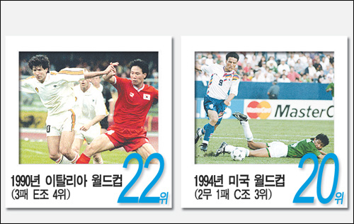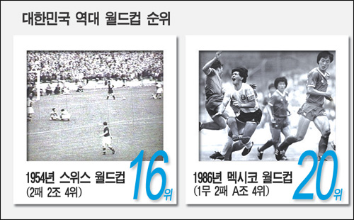 한국의 최고 성적은 2002년 한-일월드컵서 기록한 4위. 조선은 1966년 잉글랜드 대회서 8위에 오르며 기염을 토했지만, 이번대회선 최하위인 32위에 머물렀다.