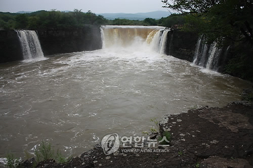 세계 최대 규모의 용암 언색호인 경박호 일대가 한국의 대명 그룹 등이 참여한 가운데 대규모 관광단지로 개발된다. 사진은 경박호 최고의 경관으로 꼽히는 경박호 폭포.