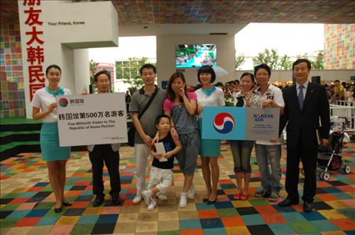 한국관에 500만 번째 입장한 주인공은 중국 복건성에서 무역회사에 다니는 진문(陈文. 37) 씨이다.