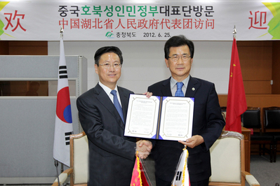 우호교류협정 체결식에서 이시종 충북지사는 "한중수교 20주년을 맞아 후베이성과 우호교류협정체결로 가까워지게 되어 기쁘게 생각한다"며 "충북과 청주국제공항이 후베이성과 한국을 연결해주는 다리 역할을 해 줄 것으로 기대한다"고 말했다.