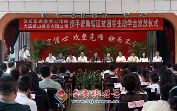 대련 돌산의 불우이웃 돕기는 10년째를 맞았으며, 앞으로도 지속할 예정이다. 사진은 중한 수교 20주년을 앞두고 열린 불우 청소년 장학금 전달식 현장.