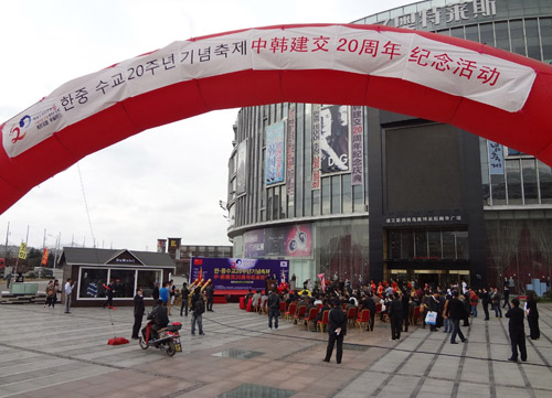 (흑룡강신문=칭다오) 장학규 특약기자 = 지난 10월 26일부터 29일까지 칭다오시 청양구에 위차한 성문아울렛에서 나흘간 ‘한중수교 20주년 기념축제’가 성황리에 개최되었다. 이 축제는 재칭다오한국인회가 해마다 개최하는 ‘칭다오한국주간축제’를 중한 수교 20주년을 맞는 금년의 의미에 맞추어 명칭을 바꾸어 진행한 것이다.