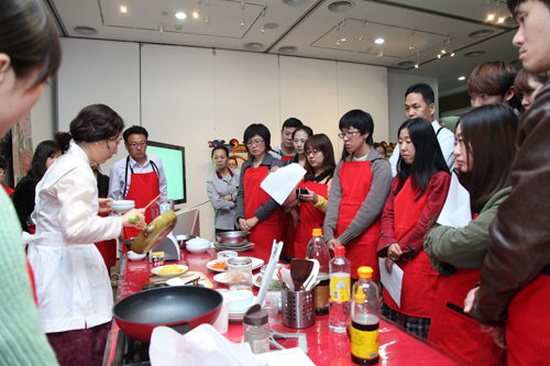 중한 커플 한국 잔치음식 체험교실 현장. /박복선 특약기자
