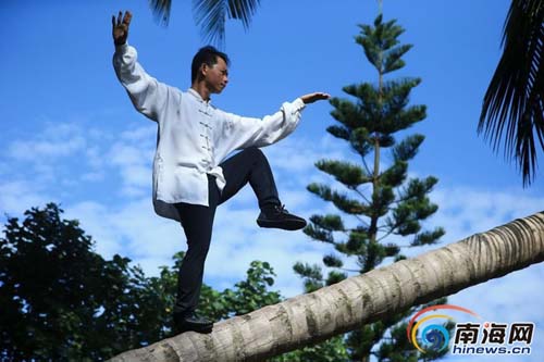 (흑룡강신문=하얼빈) 하이난(海南)대학 교정의 야자수 나무에서 무예를 연마하는 ‘신인(神人)’이 SNS상에서 인기를 구가하고 있다. 간단한 워밍업 후 그는 비호처럼 날아서 야자수에 올라가 외발로 서거나 두 팔을 벌리고 나는 동작으로 무예를 연마했다. 야자수 나무에서 족히 20여 분을 서 있어도 아무렇지도 않다는 듯한 태연자약한 표정은 많은 구경꾼들의 시선을 압도한다. 이 남성은 9살 때부터 무예를 연마해 현재 40명의 제자를 두고 있다고 한다./인민넷