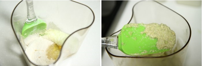 완두비지와 계란, 와플믹스, 물을 넣어 골고루 섞어주었습니다... 조금 되직한 정도로~~