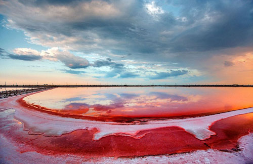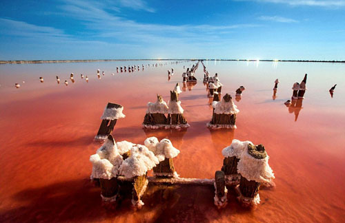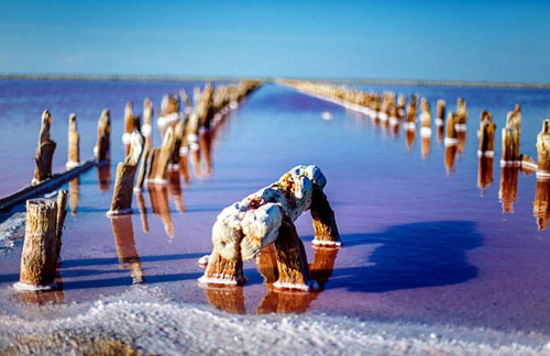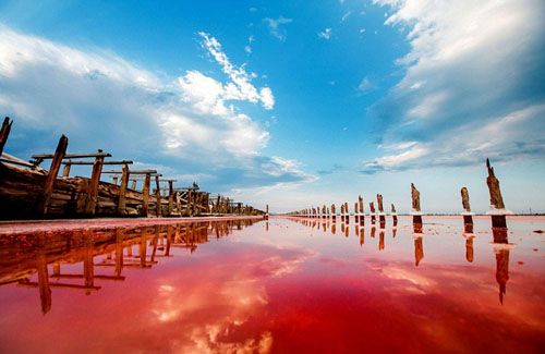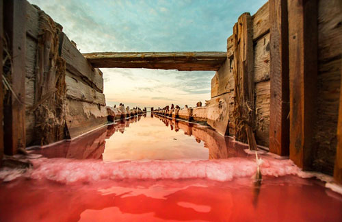 (흑룡강신문=하얼빈) 영국 일간지 ‘데일리 메일’ 4월 21일자 보도에 따르면, 크림반도 Sergey Anashkevych라는 사진작가가 열차 여행 중에 웅장한 색채의 염전 광경을 발견했는데, 이곳은 다름 아닌 소금호수 Sivash 지역으로, ‘부식 바다’로도 불리는 곳이었다. 그는 곧이어 사진기를 가지고 이곳에 내렸다. 이곳은 구소련 당시의 소금 광산이었는데 버리진 후에는 얕은 물목과 목조 건물만이 남겨졌다. Sergey Anashkevych 사진작가는 다양한 각도에서 이곳의 아름다운 모습을 담아냈다.