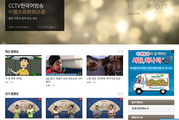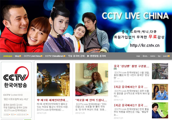 “중국CCTV한국어방송”이란 블로그명( http://blog.naver.com/cctvkr1010)으로 갓 개통된 블로그는CCTV.com한국어방송의 콘텐츠를 기본바탕으로 현재 라이브차이나라는 큰 타이틀로 중국뉴스, 동영상뉴스를 올리고 있는외 중국어강좌, 한글자막 드라마, 다큐, 애니메이션 등 동영상을 업로드하는 무료서비스를 제공하고 있으며, “중국CCTV.com”으로 이름 한 다음tv팟은 동영상콘텐츠를 주력서비스 하고 있다.