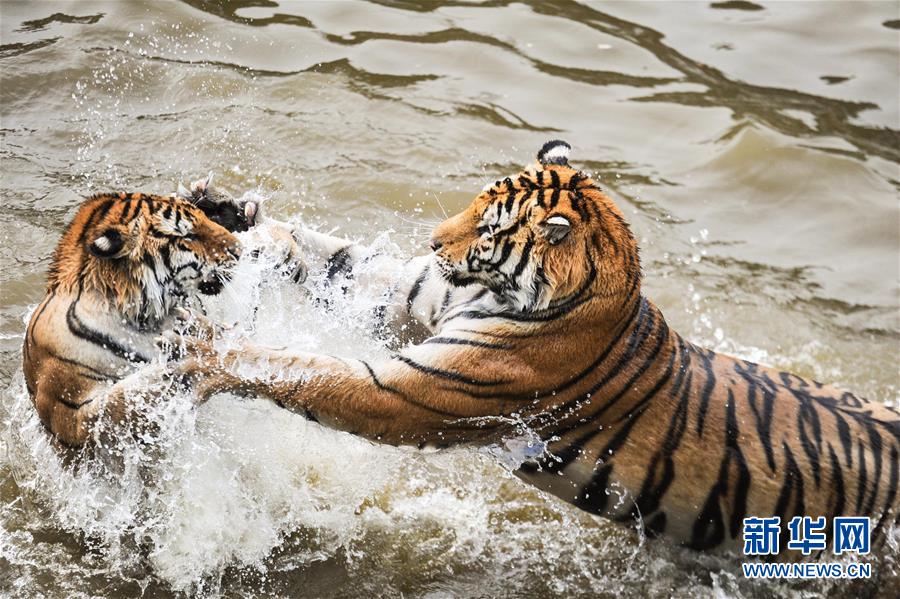 찜통 더위...연못서 더위 달래는 동북호랑이들중복에 접어들면서 찜통 더위가 지속되고 있는 가운데 헤이룽장성(黑龙江省) 하이린시(海林市) 헝다오허즈(横道河子) 동북호림원의 수십 마리 동북호랑이들이 연못에서 물놀이를 즐기며 더위를 달랬다. 중국 동북호랑이 인공사육기지인 헝다오허즈 동북호림원에는 현재 동북호랑이