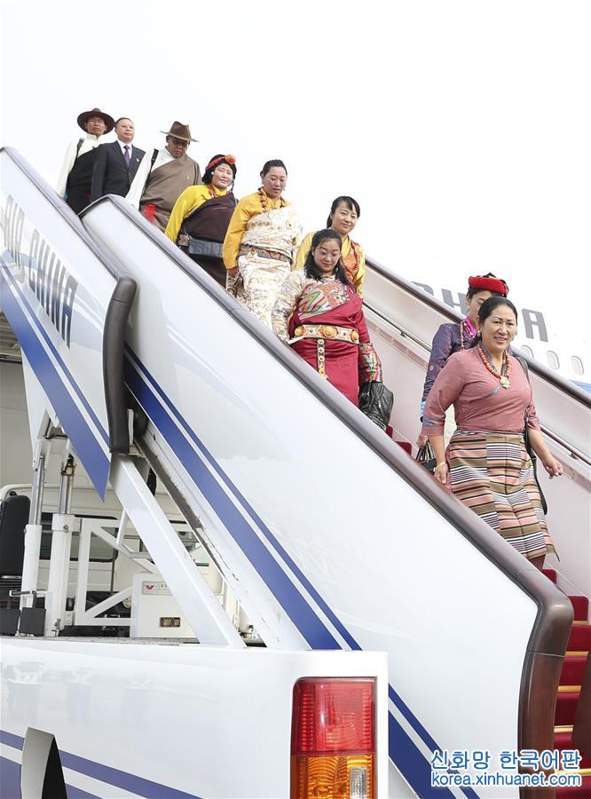 (흑룡강신문=하얼빈)10월 15일, 19차 당대회에 참석하는 시짱(西藏)자치구 대표들이 비행기로 수도국제공항에 도착했다.