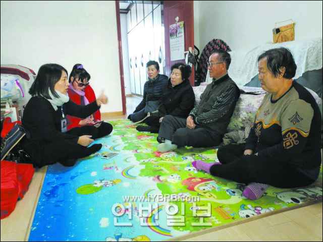 (흑룡강신문=하얼빈)연길시 광명가두 락원사회구역에서는 민간강연단을 조직하여 주민구역에 들어가 19차 당대회 정신을 선전하고 있다. 사진은 온돌에서 주민들에게 강연을 하는 강연단 성원들.