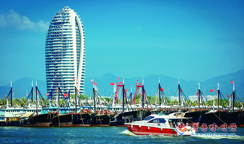 ▲사진= 하이난국제관광섬의 명주로 불리우는 산야 봉황도,8만톤급 국제크루즈선이 정박할수 있는 항구가 건설된 섬이다.산야의 명물인 봉황도호텔일각./주성일 기자