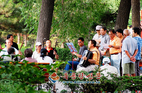 '음악의 도시'로 불리우는 하얼빈은 가는곳마다에서 음악의 정취를 느낄수 있다. 송화강변에서 음악 애호가들이 즐거운 휴식의 한때를 즐기고 있다./ 주성일 기자